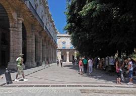 Uno de los sitios más llamativos para los visitantes de la zona fundacional de La Habana -ciudad que se apresta a celebrar sus 500 años en 1919- es la calle de adoquines de madera, situada frente al Palacio de los Capitanes Generales.