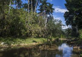 En un viaje panorámico, subiendo por empinadas carreteras cafetaleras, desde Manicaragua, hacia el lomerío más elevado del Escambray, con camiones del Grupo de Turismo Gaviota, S.A., se acorta la distancia hacia el Parque Nacional Topes de Collantes con el gran lago Hanabanilla de 15 kilómetros de extensión.