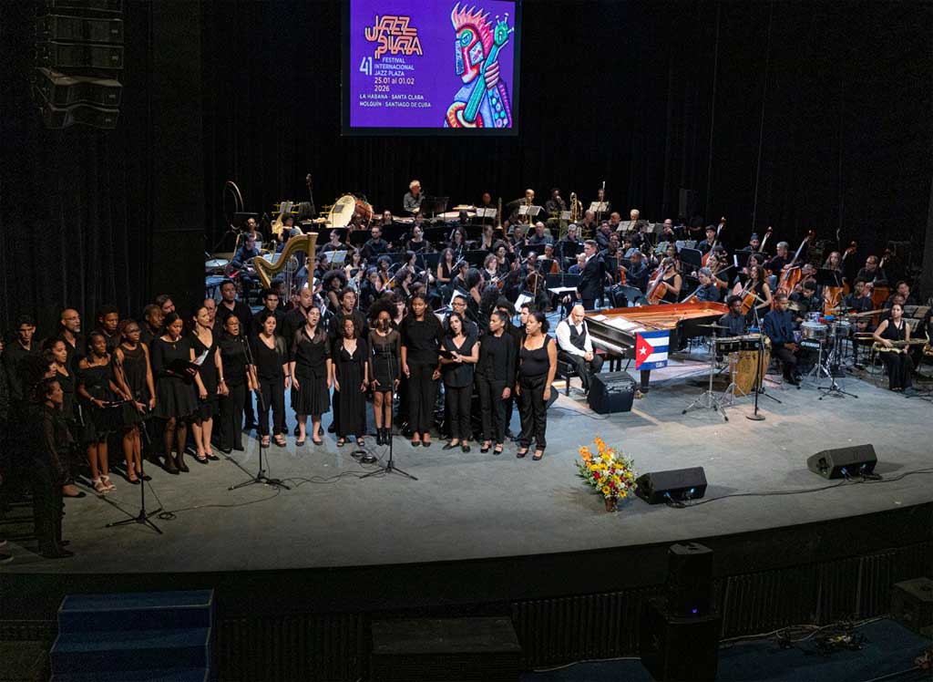 El espectáculo reunió a agrupaciones reconocidas dentro del panorama musical cubano. El Quinteto de Saxofones Cuban Sax, dirigido por Germán Velazco, el Coro Nacional y la Jazz Band del Conservatorio Amadeo Roldán aportaron una diversidad sonora que amplió la dimensión del concierto y fortaleció su carácter colectivo.