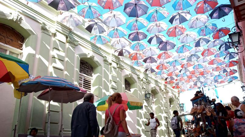 Las sombrillas no tienen porque estar siempre asociadas al sol o a la lluvia… con ellas también es posible darle colorido y vida a una ciudad. Por eso los aproximadamente 160 «paraguas» del Callejón tienen un valor agregado: son decoradas con obras de artistas cubanos… es decir, otro elemento a favor de esta práctica, implementada con anterioridad en varios países, entre ellos, Portugal, Gran Bretaña y México.