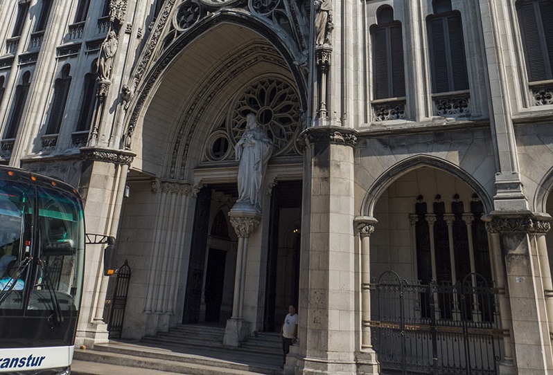 Su interior es fastuoso, con hermosos vitrales por donde se filtra la luz, construyendo un ambiente de colores matizados, que quiebran las penumbras y sobrecogen a los fieles.