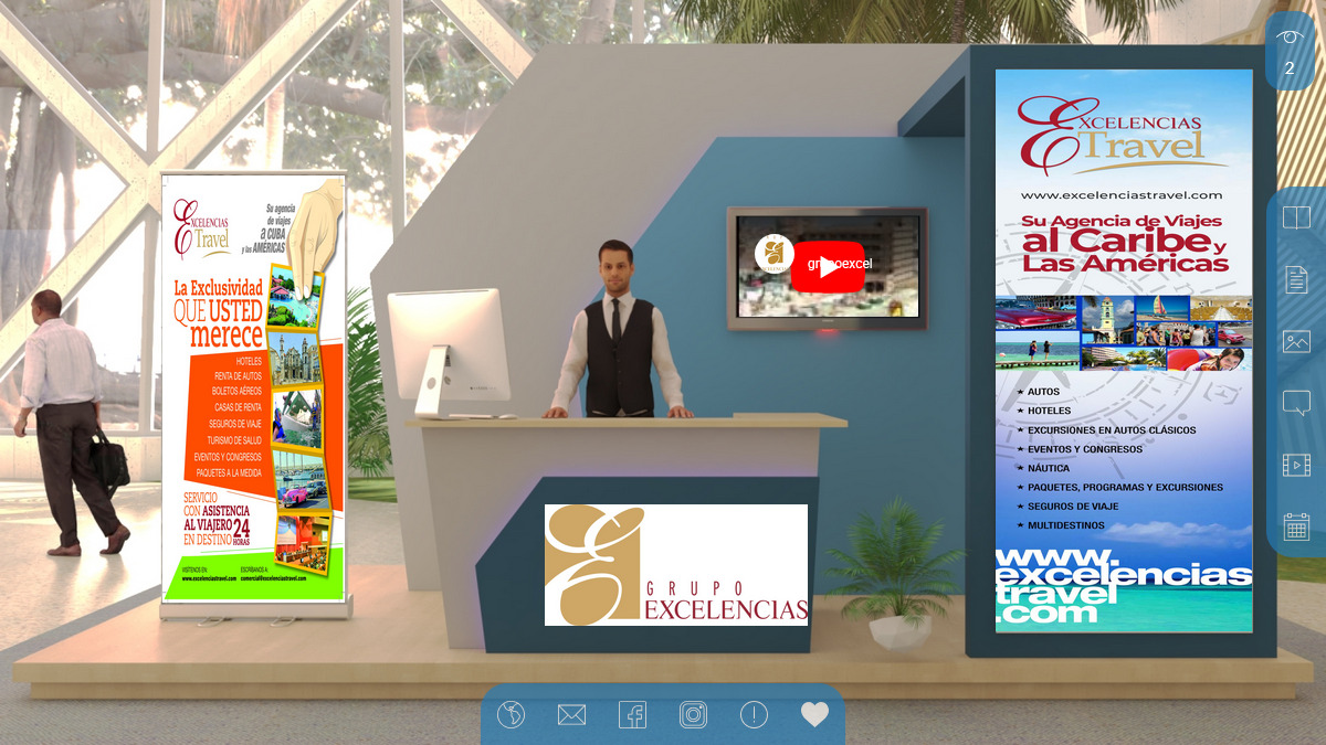 Desde nuestro estand virtual de la agencia de viajes Excelencias Travel, y a través de la plataforma oficial del evento fitcuba.fevexpo.cu, nuestros amigos, clientes y colaboradores podrán intercambiar con todos los actores del Grupo Excelencias: la propia agencia de viajes Excelencias Travel, la inversora GoldBlack (a la que pertenecen las tiendas virtuales MallHabana y Amifamilia) y Exclusivas Latinoamericanas S.A., empresa gestora de todas las publicaciones.