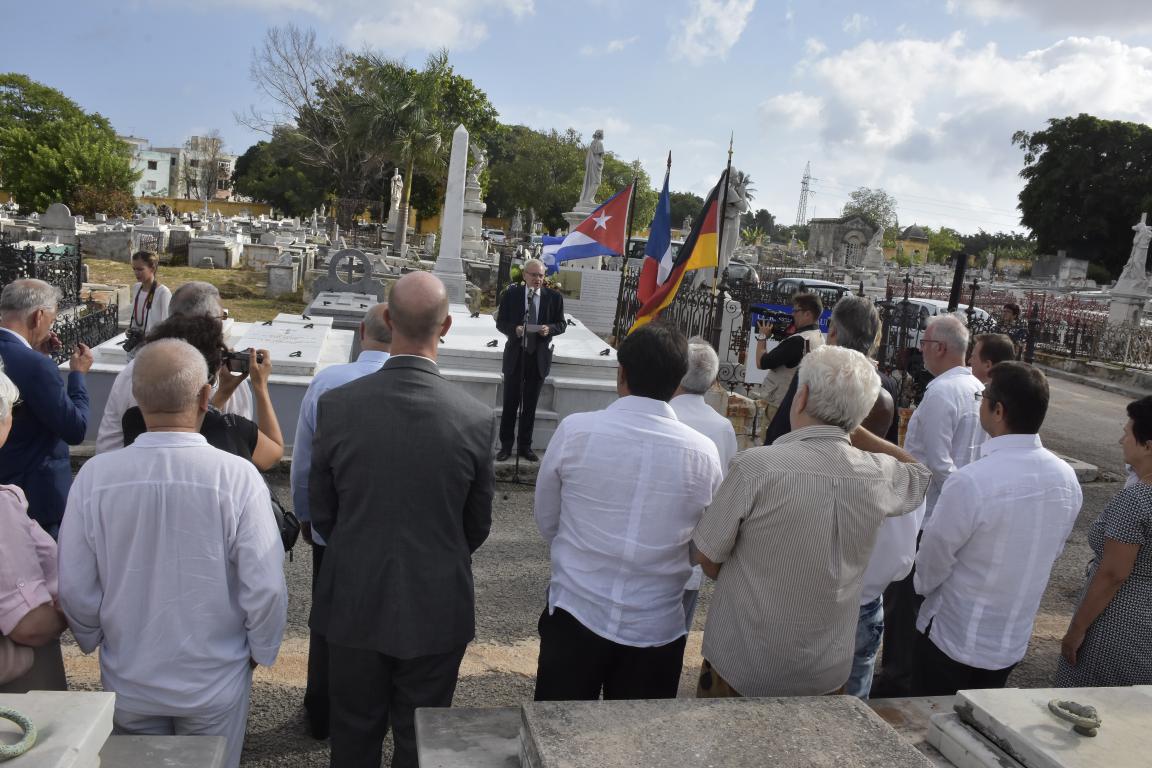 En un solemne acto al que asistieron los embajadores de Francia y de la República Federal de Alemania, los señores Patrice Pauli y Thomas Neisinger, respectivamente; el Historiador de la Ciudad de la Habana, Dr. Eusebio Leal Spengler; embajadores de la comunidad europea en esta capital, así como importantes personalidades cubanas y extranjeras, quedó inaugurado, luego de una consiente y detallada renovación, el Obelisco, monumento de recordación a dos víctimas alemanas del conflicto franco-prusiano de 1870.