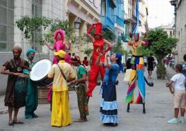 Con trajes coloridos y ruidosos instrumentos, la compañía Gigantería anima nuevamente La Habana Vieja.