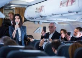 Laura Pausini presentó este viernes, en pleno vuelo de Alitalia entre Roma y Milán, "Fatti sentire", el disco número 13 de su carrera, mientras se prepara a cantar por primera vez en Cuba, invitada por el dúo Gente de Zona.