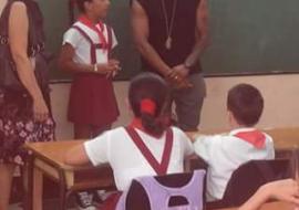 Una veintena de intelectuales y artistas pertenecientes al Comité Presidencial para las Artes y las Humanidades de EE.UU. -desde este lunes en Cuba-, compartió el martes con niños y profesores de la Escuela Primaria Miguel Fernández Roig, como parte de la agenda que desarrollan en la Isla.