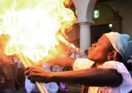 El Desfile de la Serpiente de la Fiesta del Fuego, que tiene lugar este viernes en las calles de Santiago de Cuba, es el evento más esperado dentro del programa del 39. Festival del Caribe, dedicado a Uruguay y a los 60 años del triunfo de la Revolución.