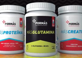 La marca de los productos PORMÁS tiene tres tipos: Glutamina, Creatina y Proteína (Whey Protein)