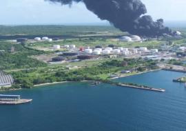 Una descarga eléctrica provocó un incendio de grandes proporciones en la Base de Supertanqueros de la provincia de Matanzas