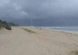 El Instituto de Meteorología de Cuba (INSMET) reporta hoy la ocurrencia de una tormenta local severa en las playas del este de La Habana, en las inmediaciones de Guanabo y Boca Ciega, donde un tornado provocó daños en cubiertas ligeras, árboles y el tendido eléctrico. Según la nota del INSMET, la tromba marina penetró en tierra alrededor de las 10:30 de esta mañana, y se convirtió en un débil tornado.