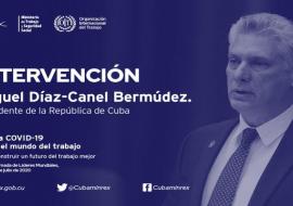 El Presidente de Cuba, Miguel Díaz-Canel, intervino este 8 de julio en la Cumbre Mundial Virtual de OIT, centrada en el impacto de la Covid-19 en el sector.