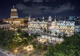 En los alrededores del Parque Central, resplandecen cada noche el Gran Teatro de La Habana Alicia Alonso, los hoteles Inglaterra y Manzana y el Capitolio, que reserva el esplendor total de sus luces y destellos para el 16 de noviembre, fecha del cumpleaños de la ciudad.