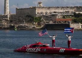 Los pilotos estadounidenses de lanchas rápidas Nigel Hook y Jay Johnson establecieron este jueves par de récord mundial de velocidad en el trayecto de ida (1:18:03) de Cayo Hueso a La Habana.