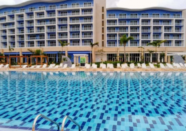 Ubicado a la entrada del bello balneario matancero, la complejidad estructural del edificio está determinada por la elevada demanda de volúmenes de hormigón, su forma curva, semejante a una ola, entre otros factores