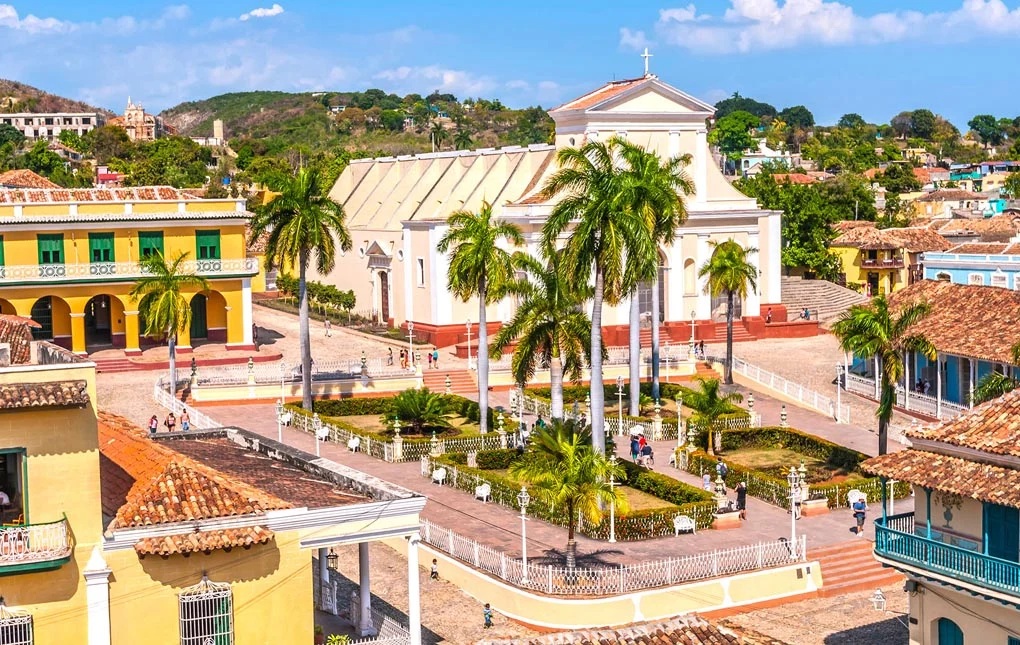 Trinidad, fundada en 1514 por Diego Velázquez de Cuéllar, se consolidó entre el mar Caribe y la Sierra de Guamuhaya gracias al contrabando, la ganadería, el tabaco, la industria azucarera y la trata de esclavos. Su conjunto arquitectónico y urbanístico conserva un estado excepcional, lo que convierte a la ciudad en un museo vivo. La Plaza Mayor, la Iglesia Parroquial, las calles empedradas y las edificaciones señoriales con influencias barrocas, neoclásicas y eclécticas destacan como símbolos de su riqueza cultural.